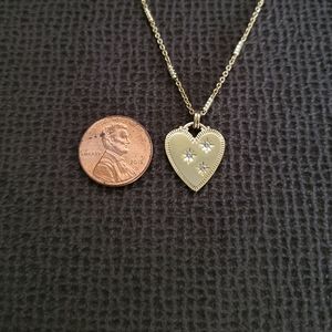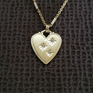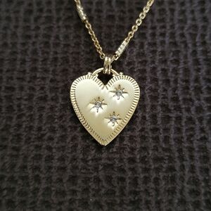 -shiny gold heart💛 pendant with three3️⃣ starbursts🌟, each starburst🌟 with a tiny cubic zirconia💎 in the center🎯