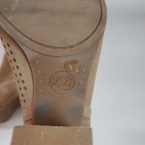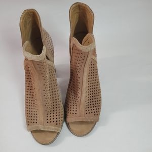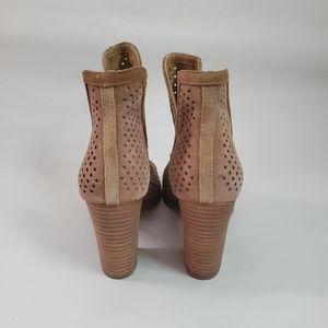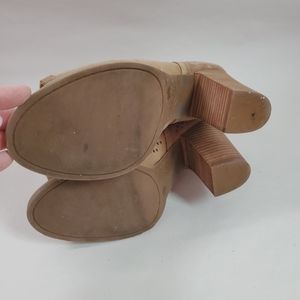 Lucky Brand Larisa Booties Women's 8W Tan Neutral Peep-Toe Leather Block Heel