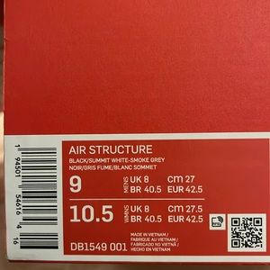 Nike Air Structure Triax 91 Sneakers Black/ Grey DB1549-001 Women 10.5 Mens 9