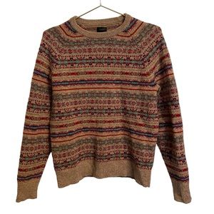 J. Crew Fair Isle Lambswool Crewneck Sweater Honey Beige Medium