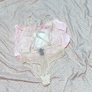 NWOT baby pink cross back, deep v lingerie piece