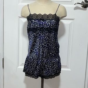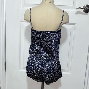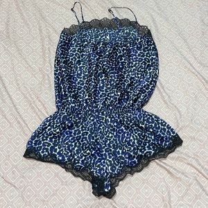 Worn blue leopard print onesie pajama still in good condition shorts bottom adjustable straps