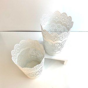 IKEA 2-Pack White Lace Metal Punched Tin Cut-Out Vase Planter Scallop Ed…