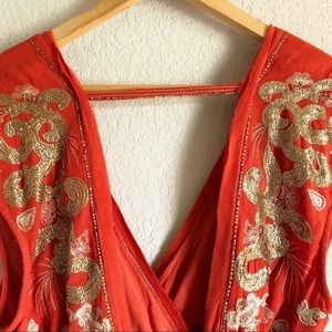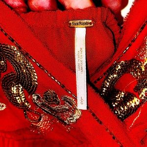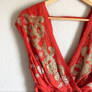 Free People RARE Ooh Lala embroidered Boho Top w/ gold sequins & open back, NWOT