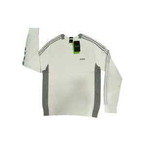 NWT Hugo Boss Men's Color Blocked Cotton Blend Sweater Striped Logo White S-XXL