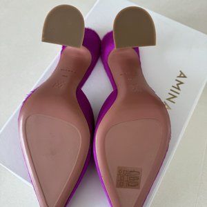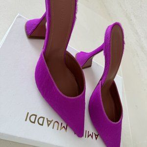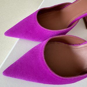 New Amina Muaddi , Calf hair slip-on mules in pink. 38.5 Originally bought from SSENSE