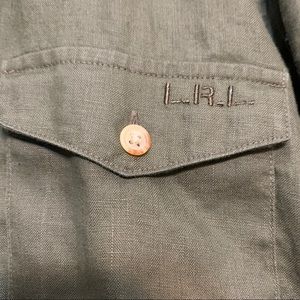 Lauren Ralph Lauren Linen Top Size Petite Small EUC Army Green Olive Green Sleeves can be worn down or tabbed
