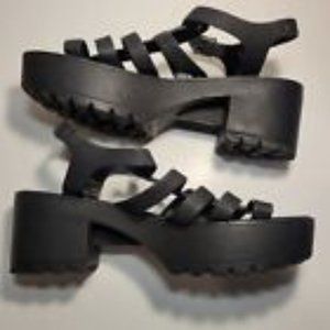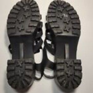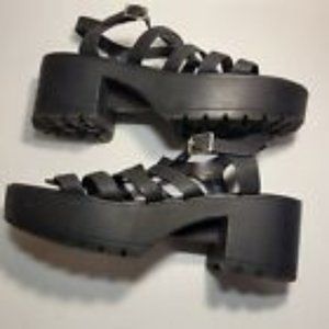 Black Gladiator Chunky Lug Sole Platform Ankle Strap Open Toe Sandal Size 10