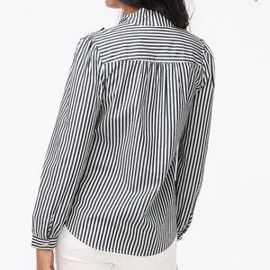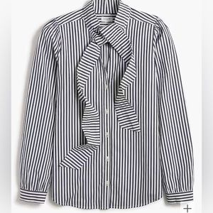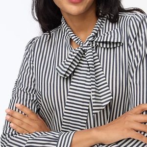 This top from J. Crew is perfect for any occasion. The blue and white striped pattern adds a classic touch, while the bow tie-neckline and lightweight material give it a more casual feel. It features long sleeves with a casual sleeve type and a tie closure.