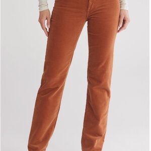 Fabric is a lightweight twill with a moderate amount of stretch. Very comfortable 97% cotton, 3% elastane. Made in Turkey