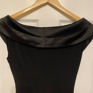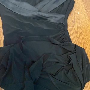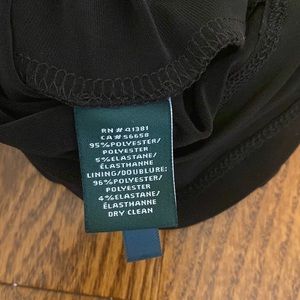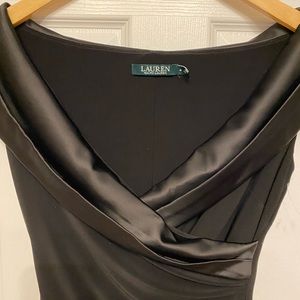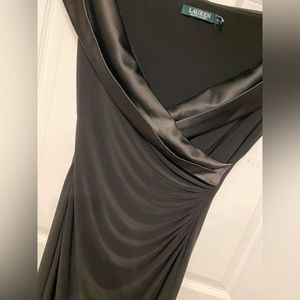 Never worn just tried on. Size 4. 39” from shoulder to hem. Double layer stretch fabric that is of substance so drapes is of beautifully, ruching at the waist. Flattering across belly area and absolutely stunning neck line in satin like material. Little snaps inside to connect to bra straps to keep neck line in place. No details missed in this Classy Ralph Lauren design.