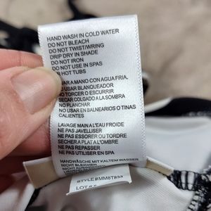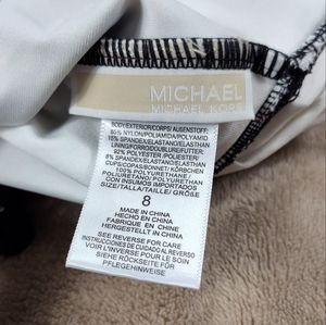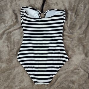 MICHAEL Michael Kors women's one piece swimsuit. Black and white striped print. Halter neck tie closer.