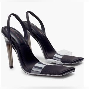EILEEN FISHER Sweater. Lightweight black hooded sweater with deep V-neck, side splits at the hem and 3/4” sleeves
