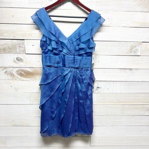 Adrianna Papell Dress Womens 8P Blue Tiered Layered Sleeveless V Neck Cocktail