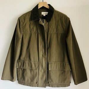 Jacket is made of a wool blend outer shell material and features a looped knit fabric. The relaxed fit and anorak style make it perfect for travel, casual occasions.