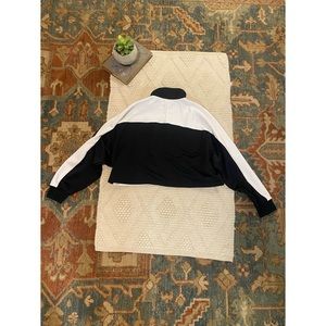 Black and white athletic cropped quarter zip. Slight imperfection on back right shoulder, as shown in photo.