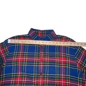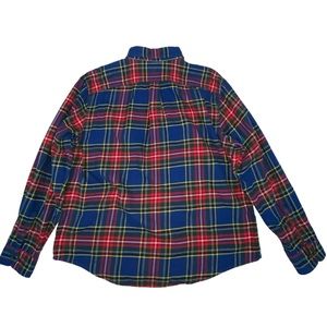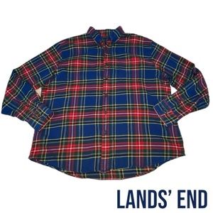 Land's End Traditional Fit Blue Red Plaid Flannel Button Down Shirt - Men’s XL