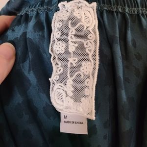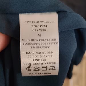 Sadie & Sage Blue Green Smocked Waist Balloon Sleeve AOP Satin Dress Womens M