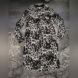 Diane Von Furstenberg DVF Prita Silk Animal Print Long Sleeve Shirtdress: Snow Cheetah Leopard Neutral