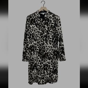 Diane Von Furstenberg DVF Prita Silk Animal Print Long Sleeve Shirtdress Size 0