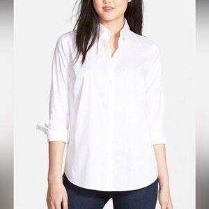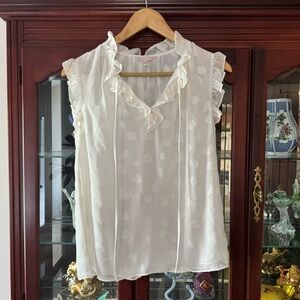 White in color. Crochet detail along the neckline and on the sleeves. Missing the belt.