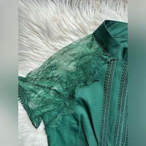 Liquorish emerald lace detail mini dress with short sleeves and a-line fit. Zippered back closure. Polyester with minimal stretch. US size 4 PETITE. Brand new with tags, no flaws or snags.