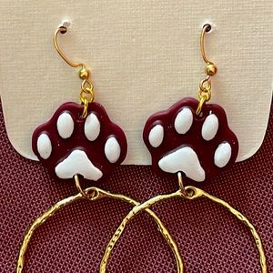 🎉♥️ Caroline Mississippi State MSU Paw Print Game Day Dangle Earrings