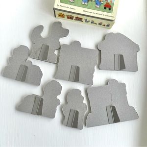 Board Book with 6 Cardboard Cutout Pieces that can Stand Up and be Arranged into Different 3 Dimensional Scenes