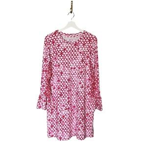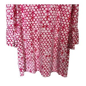 Ibkül Pink White Geo Print Long Mesh Sleeve 1/4 Popover Shift Active Dress Sz L