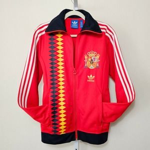 *RARE* ADIDAS Men's Spain Firebird World Cup Soccer Team Track Zipper Red and Navy-Blue Jacket Sz M