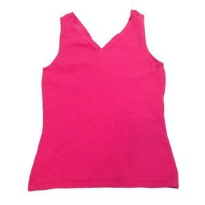 Essendi pink sleeveless double v-neck sweater top. New without tags. Measurement from shoulder to hem is 21 inches. Under arm seam to under arm seam measures 15 inches flat. Material has spandex. So it has some give. Hand wash. Size Small.