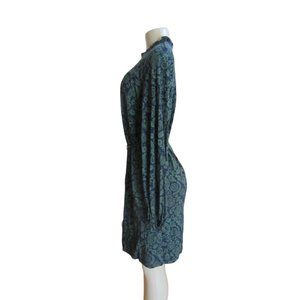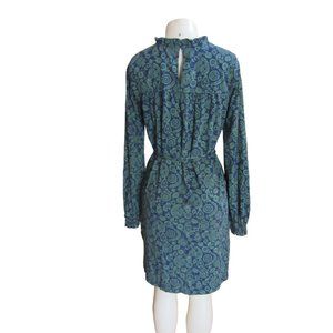 Boden Green & Blue Paisley Long Sleeve Jersey Sheath Dress w Tie Belt in Size 6L