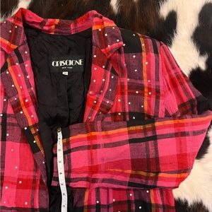 Criscione Vintage Pink Plaid Flannel Crystal Blazer Women’s Medium