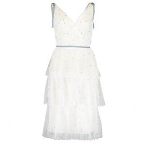Marchesa Notte NWT - white ruffle dress with embroidered light blue polka dots