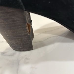 As you can see from the photos, these boots have been well-loved. The suede has rubbed away in a few spots and the wooden heels are peeling a bit. Selling because I feel like they still have some life left in them, but I no longer wear heels very often.