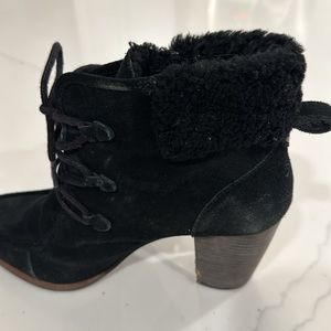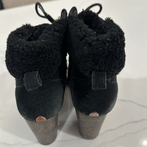 Uggs black suede high heel lace-up booties. Size 11. Pre-worn, well-loved.