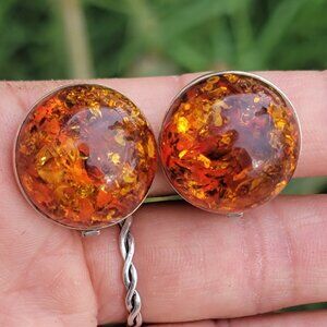 Fascinating handmade delights! Each earring features solid 925 sterling silver graduating discs. Top one is much smaller than bottom one. Discs are attached by a link. They are decorated with borders of shadow box like designed tiny diamonds. Large disc has a hand hammered center. Very well made. Stick posts. No stamps, but tested as sterling silver. Will come with new silicone backings. Vintage pieces with plenty of natural patina!