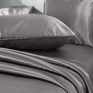 Premium Silky Satin 4 Pieces King Sheet Set: Grey Satin King sheet sets deep pocket is woven with asilky and smooth touch, it has a lustrous elegant look.