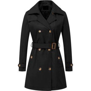 Women's Double Breasted Trench Coat Mid-Length Belted Overcoat Long Dress Jacket