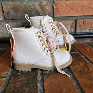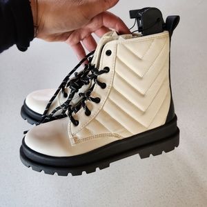 Girl Quilted Combat Boot, Ivory Color.