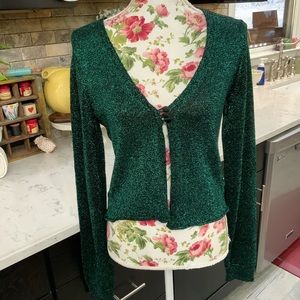 Free People Emerald Green Emmaline Metallic Cardigan Sweater Size Medium New