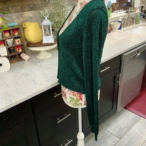 Free People Women's Emerald Green Emmaline Metallic Cardigan Sweater