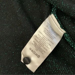 Elevate your wardrobe with this stunning emerald green metallic cardigan sweater by Free People. The tight-knit pattern provides a shimmer effect that adds a touch of glam to any outfit. The V-neckline and regular long sleeves make it a versatile piece suitable for any occasion, whether it be a casual outing or a formal event.
