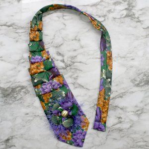 HAND CRAFTED Scarf Necklace Wrap Accessory Upcycled Necktie Purple Floral Grapes