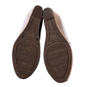 Natural woven braided jute roping around the wedge soles and on the toe tips