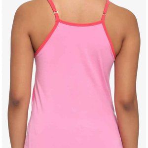 Once again, the day is saved! Take a break from the hero work and step out in this vibrant cami. Features The Powerpuff Girls in the middle of the iconic heart pattern from the end credits. This cami has a square neckline, racer cut and adjustable straps.
