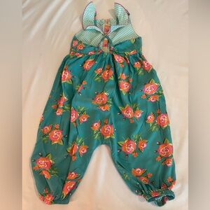 My daughter got so many compliments in this outfit, it is too cute! Matilda Jane watch the waves teal romper with beautiful floral pattern. Excellent condition