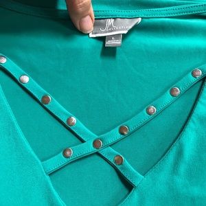 JM Collection Women’s Top Banded Criss Cross Neck Batman Sleeves Pull Over