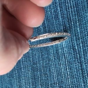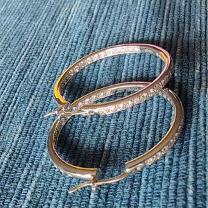 These earrings are 18k white gold with diamonds on half of the outside of the loop and 1/2 of the inside of the loop. So if someone were looking at you wearing them, they would see diamonds all around.