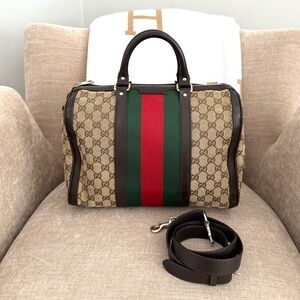 Authentic Gucci silver monogram Boston satchel Bag